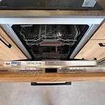 Εξοπλισμένη μικρή κουζίνα του ξενοδοχείου διαθέτει φούρνο και πλυντήριο πιάτων.